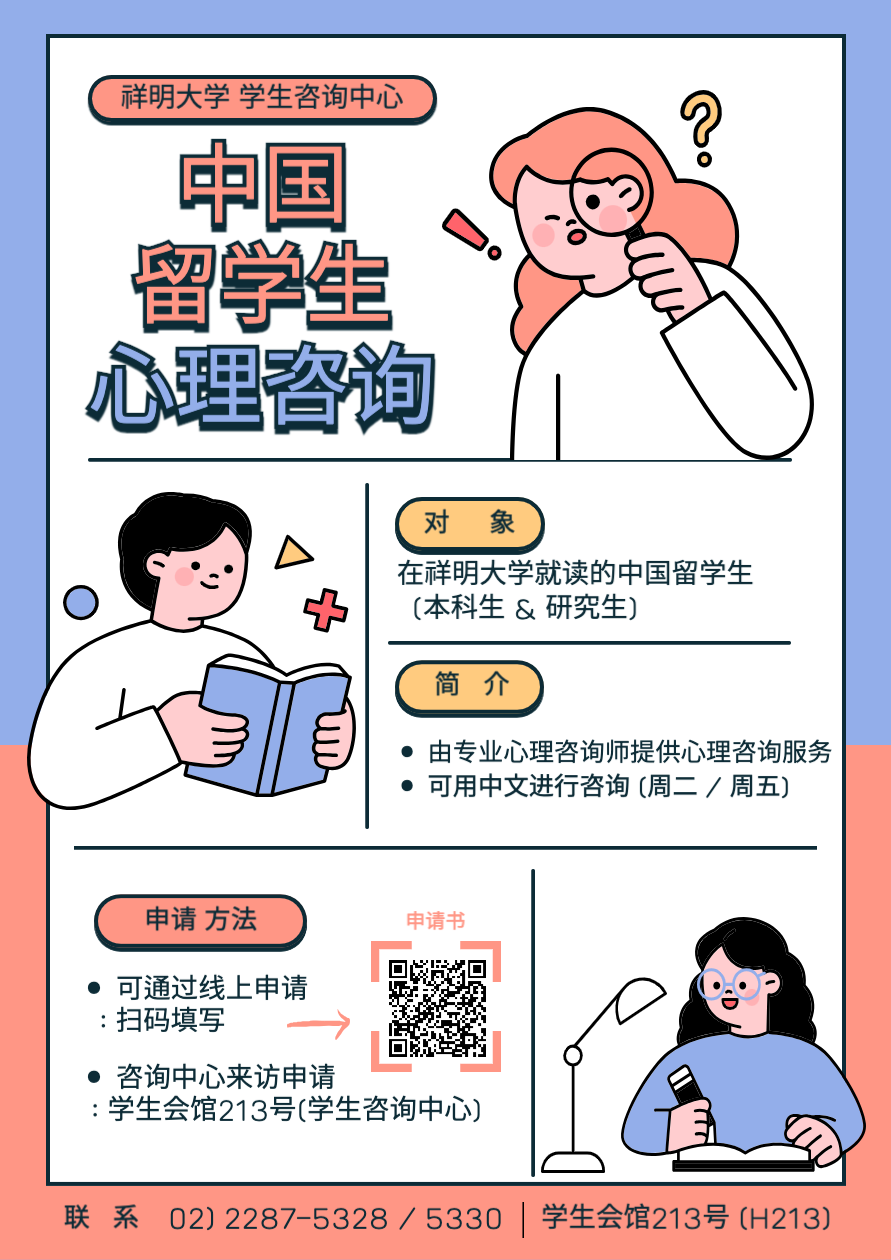 [학생상담센터] 중국 유학생 대상 중국어 심리상담 안내